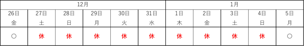 【年末年始休業期間:2025年12月27日(土)~2026年1月4日(日)】